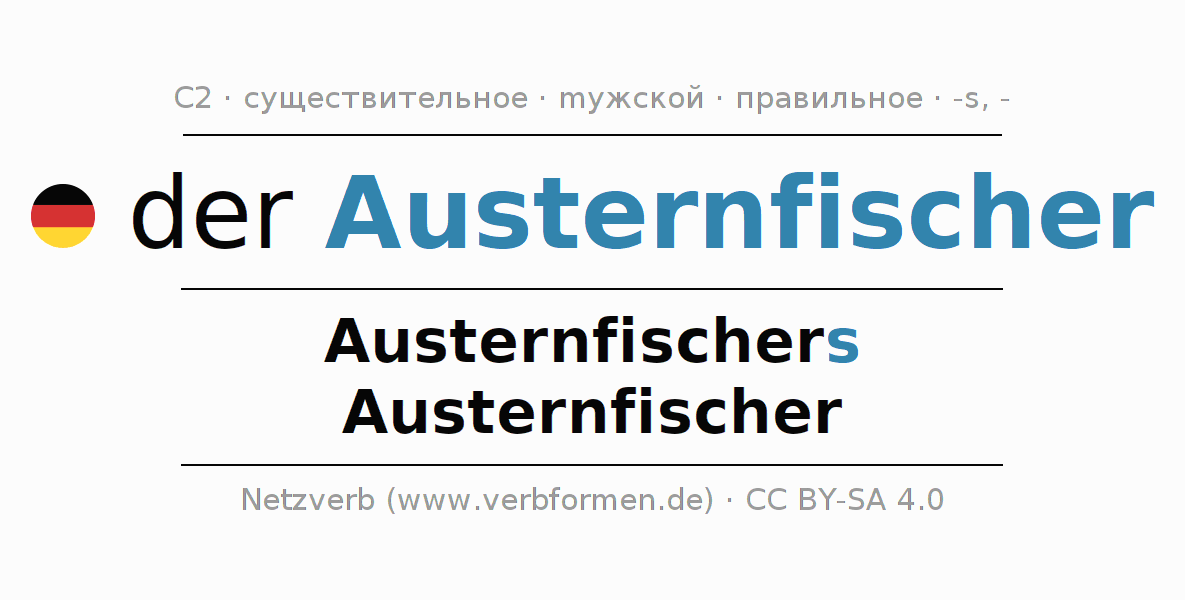 - Единственное число: der Austernfischer, des Austernfischers, dem Austernfischer, den Austernfischer