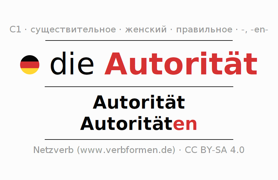 - Единственное число: die Autorität, der Autorität, der Autorität, die Autorität