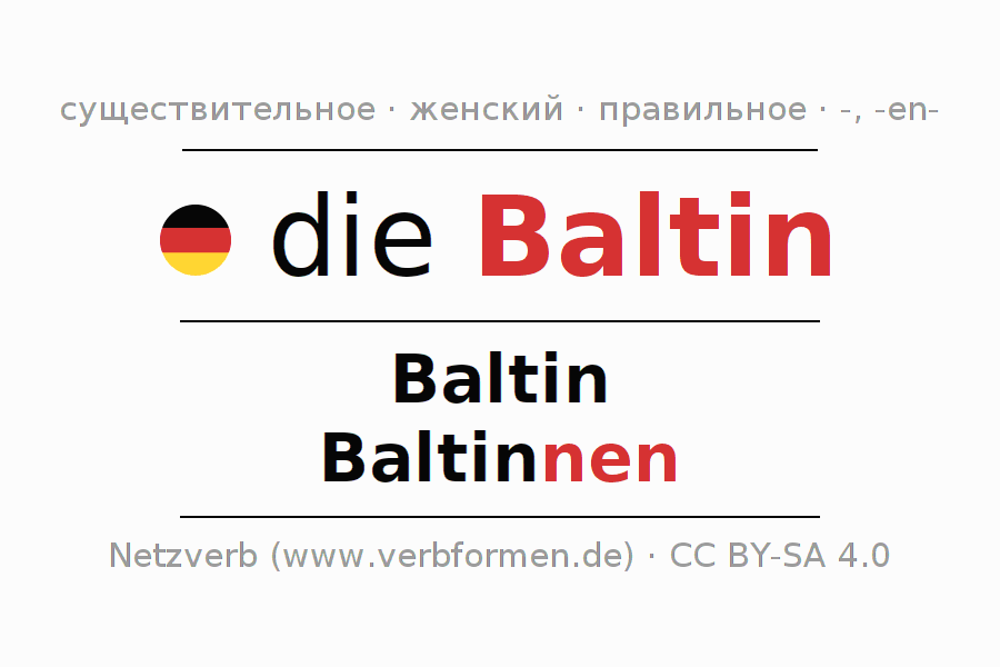 - Единственное число: die Baltin, der Baltin, der Baltin, die Baltin