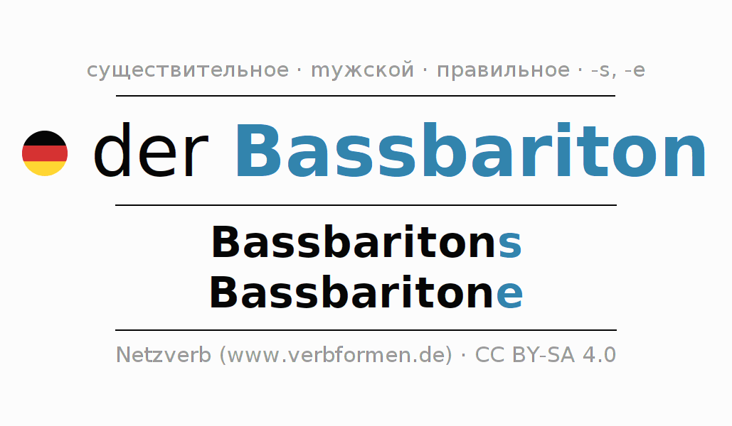 - Единственное число: der Bassbariton, des Bassbaritons, dem Bassbariton, den Bassbariton