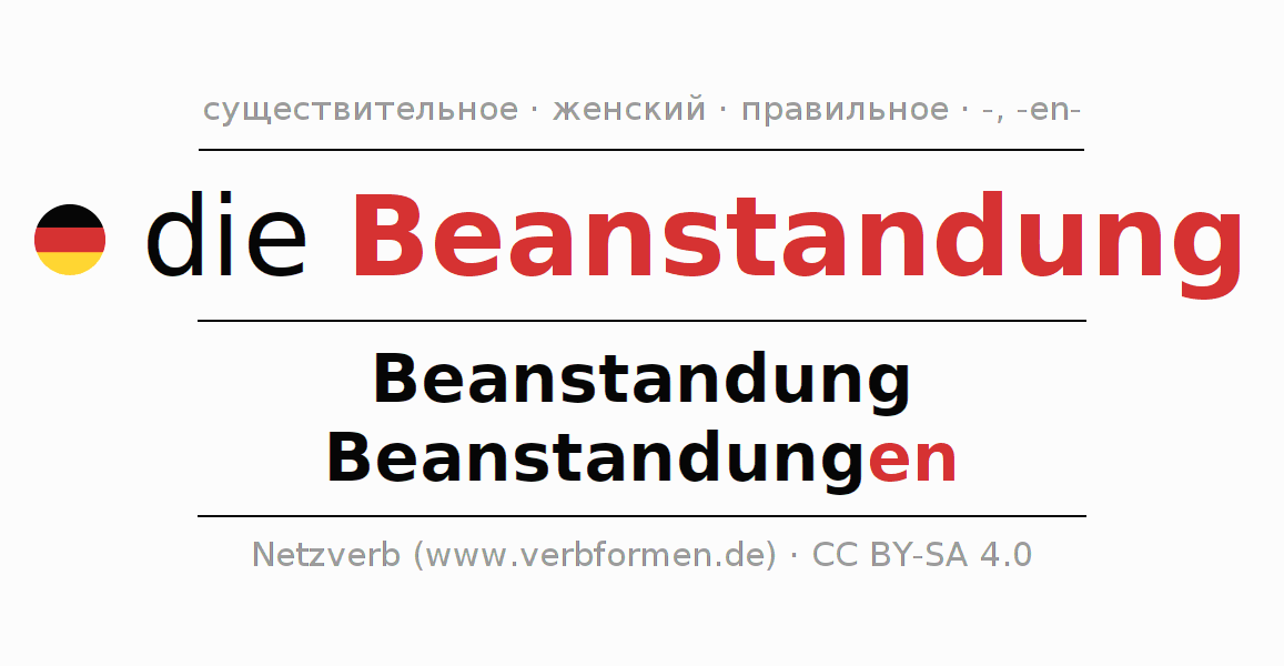 - Единственное число: die Beanstandung, der Beanstandung, der Beanstandung, die Beanstandung