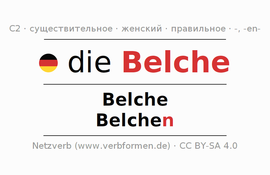 - Множественное число: die Belchen, der Belchen, den Belchen, die Belchen