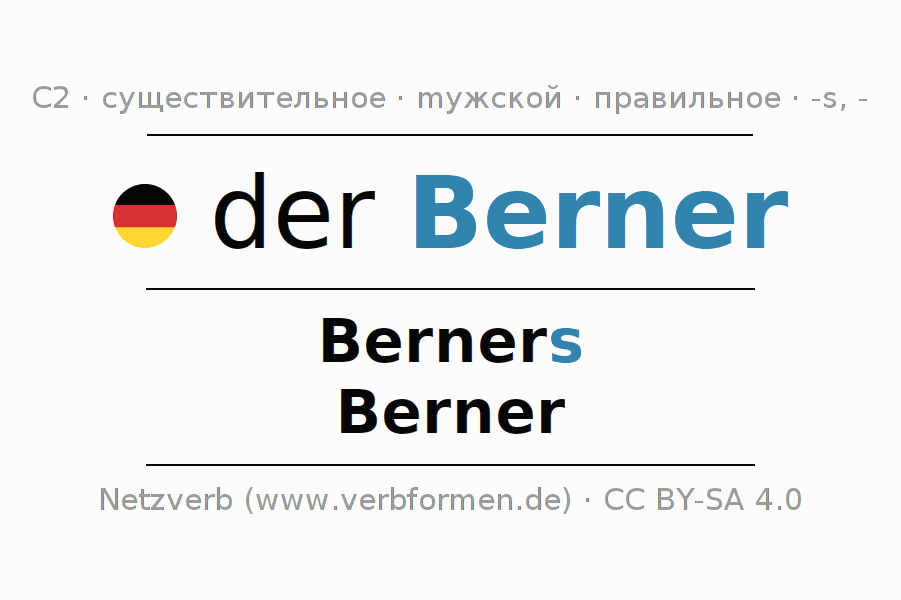 - Множественное число: die Berner, der Berner, den Bernern, die Berner