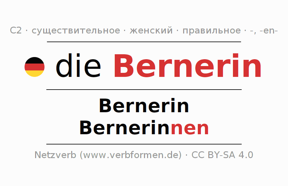 - Единственное число: die Bernerin, der Bernerin, der Bernerin, die Bernerin