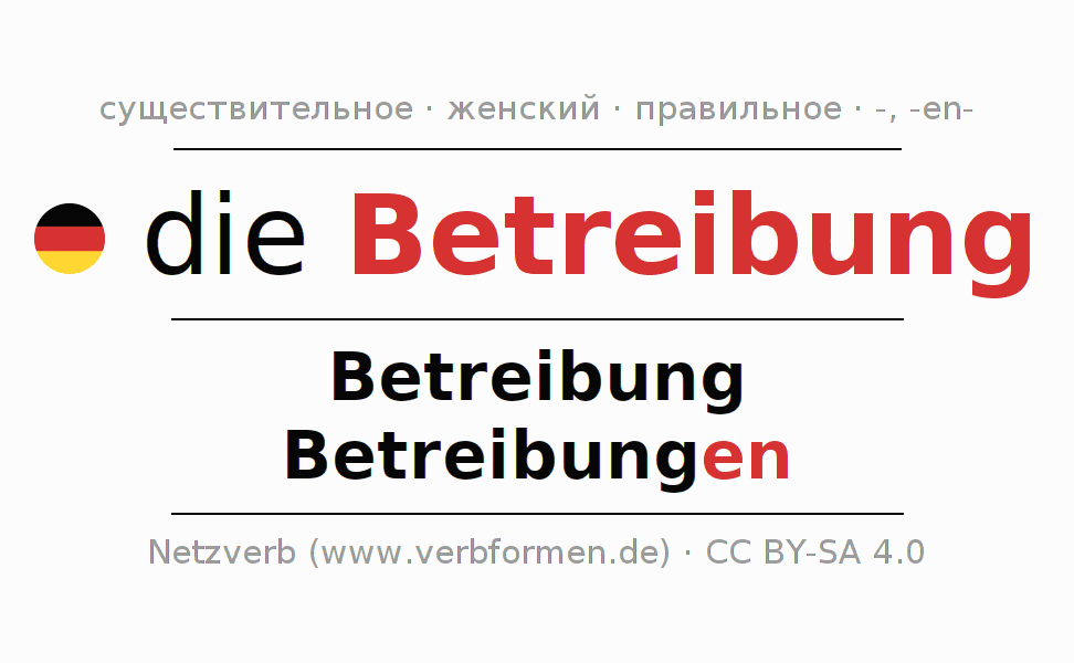 - Множественное число: die Betreibungen, der Betreibungen, den Betreibungen, die Betreibungen