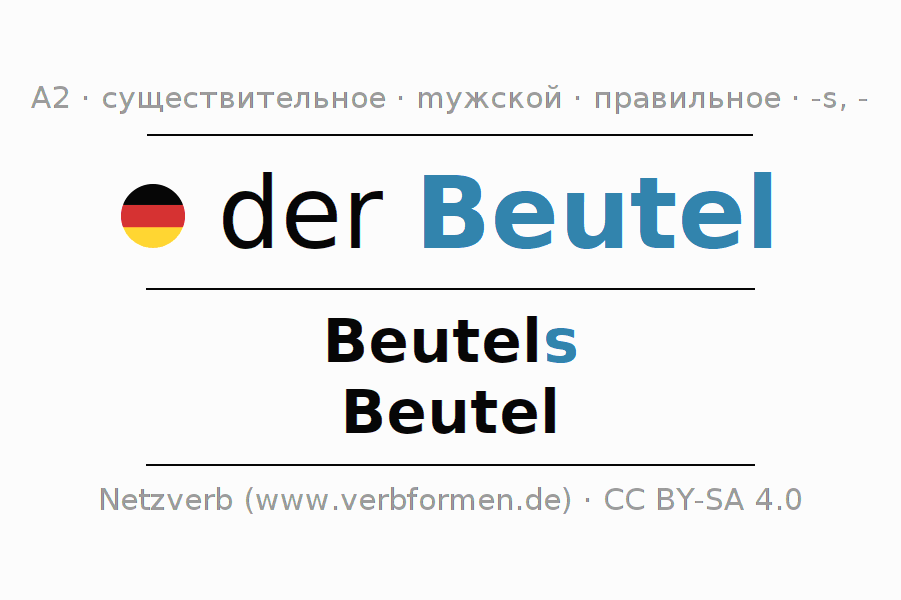 - Единственное число: der Beutel, des Beutels, dem Beutel, den Beutel