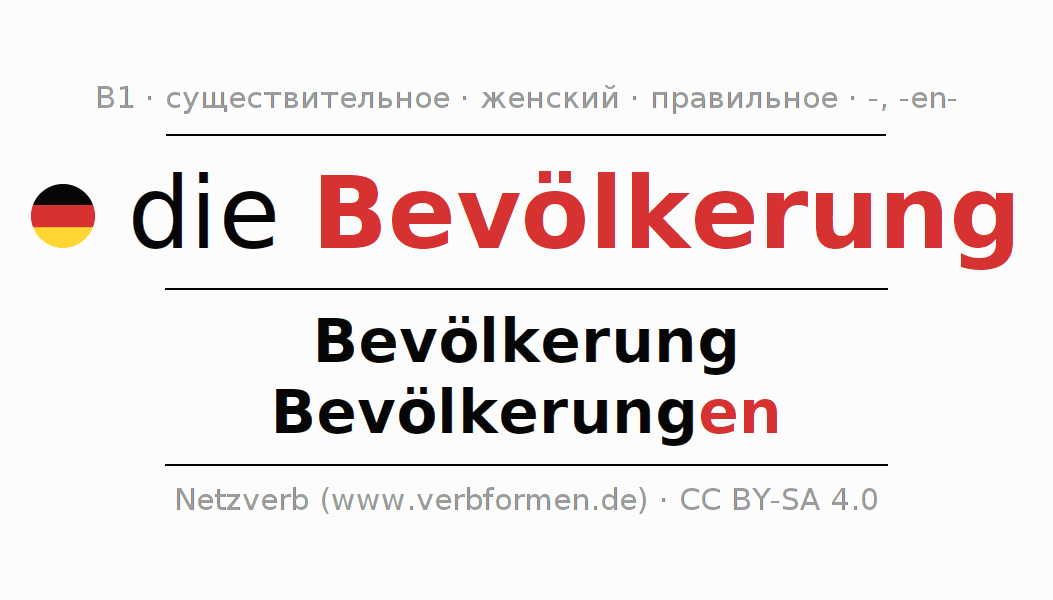- Единственное число: die Bevölkerung, der Bevölkerung, der Bevölkerung, die Bevölkerung