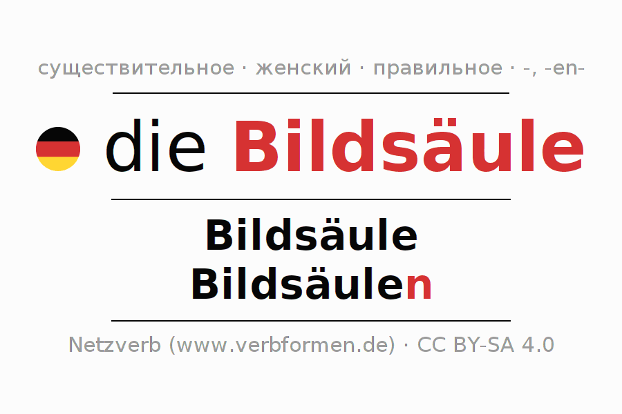 - Единственное число: die Bildsäule, der Bildsäule, der Bildsäule, die Bildsäule