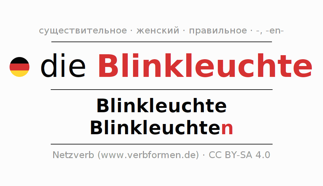 - Единственное число: die Blinkleuchte, der Blinkleuchte, der Blinkleuchte, die Blinkleuchte
