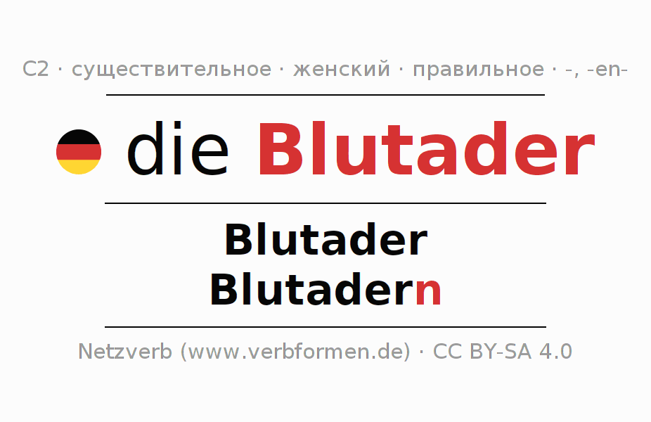 - Единственное число: die Blutader, der Blutader, der Blutader, die Blutader