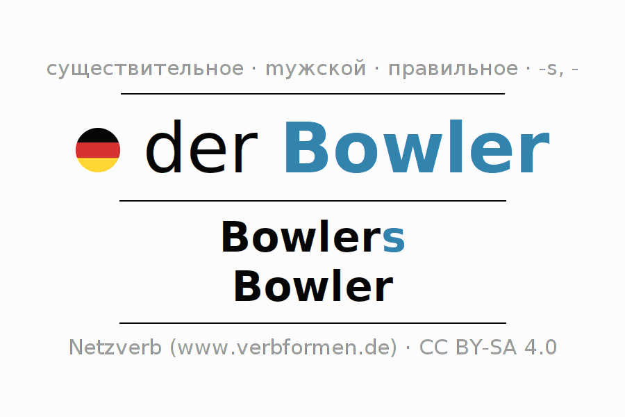 - Единственное число: der Bowler, des Bowlers, dem Bowler, den Bowler