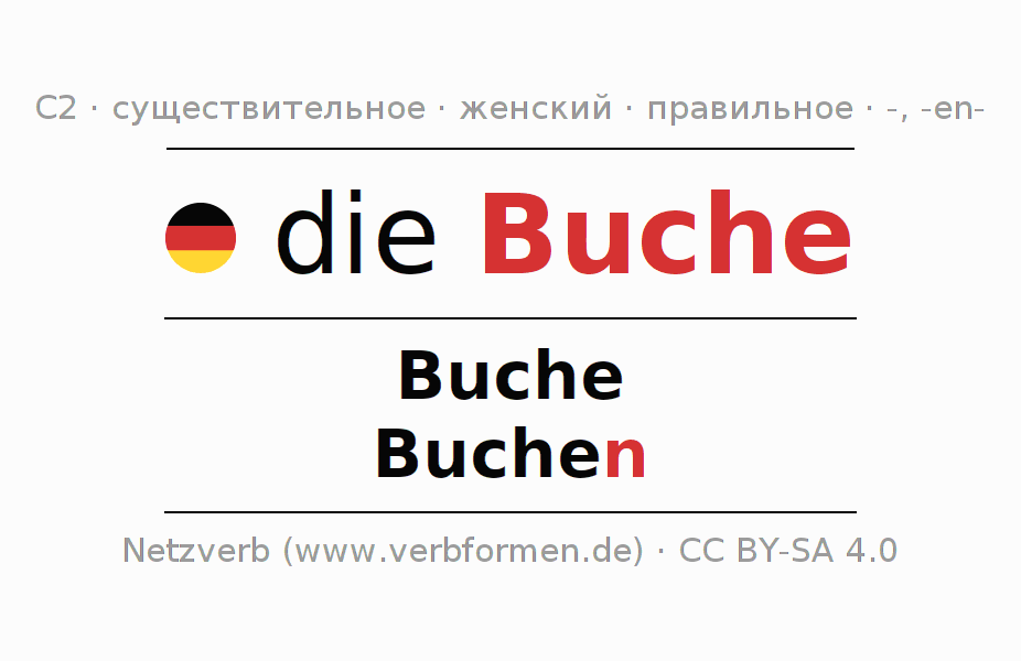 - Единственное число: die Buche, der Buche, der Buche, die Buche