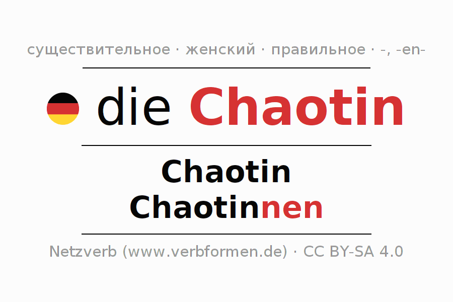 - Единственное число: die Chaotin, der Chaotin, der Chaotin, die Chaotin