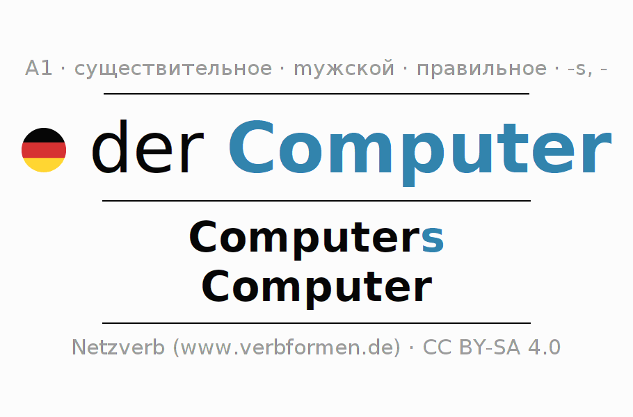 - Множественное число: die Computer, der Computer, den Computern, die Computer