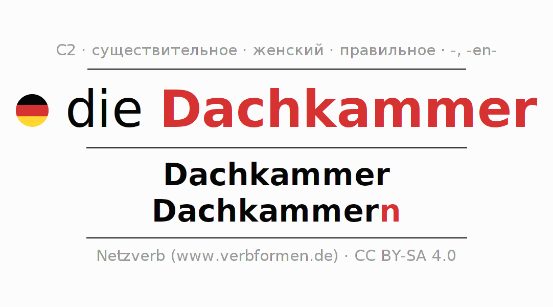 - Единственное число: die Dachkammer, der Dachkammer, der Dachkammer, die Dachkammer
