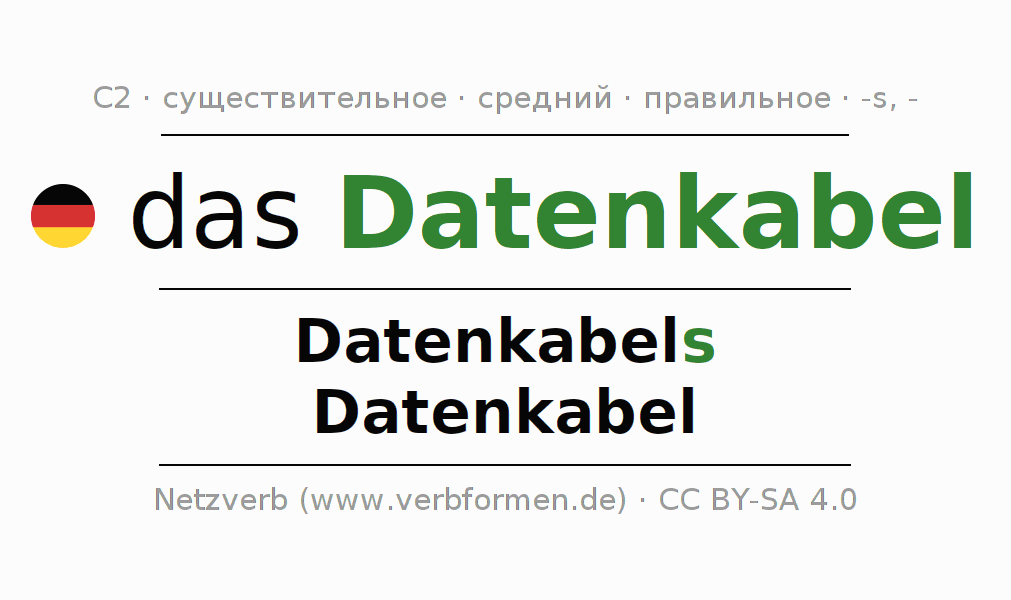 - Единственное число: das Datenkabel, des Datenkabels, dem Datenkabel, das Datenkabel