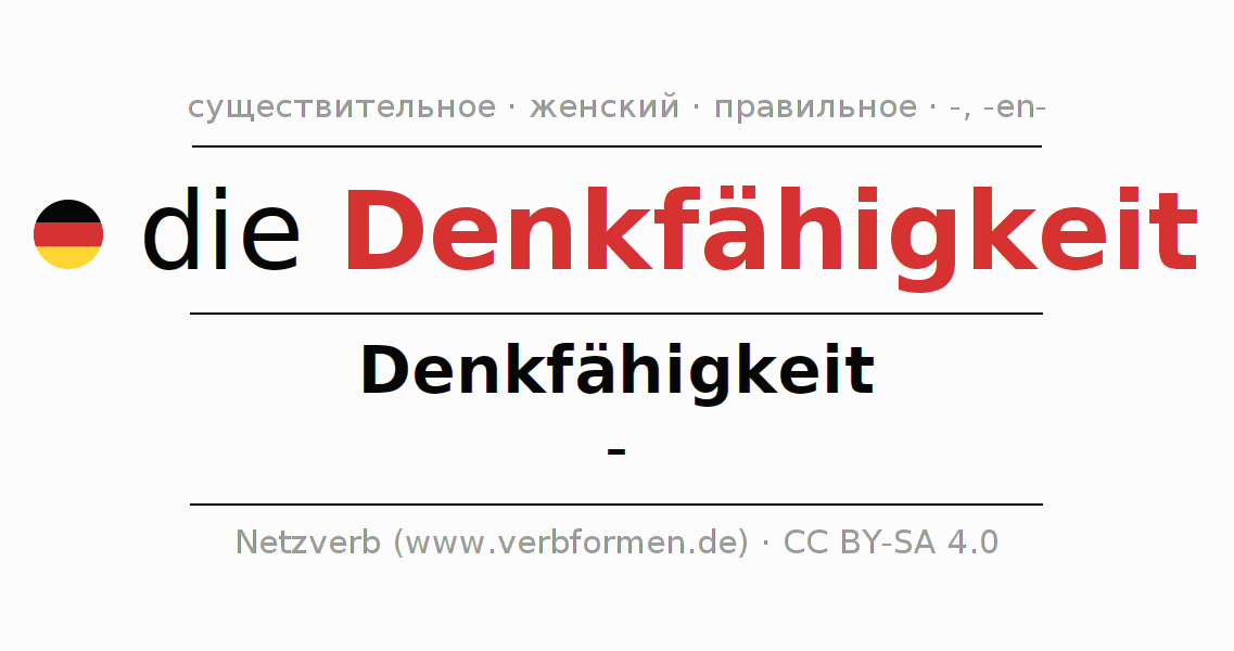 - Единственное число: die Denkfähigkeit, der Denkfähigkeit, der Denkfähigkeit, die Denkfähigkeit