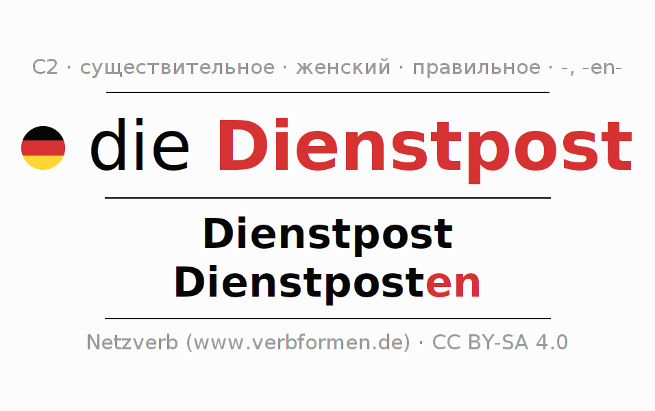 - Единственное число: die Dienstpost, der Dienstpost, der Dienstpost, die Dienstpost