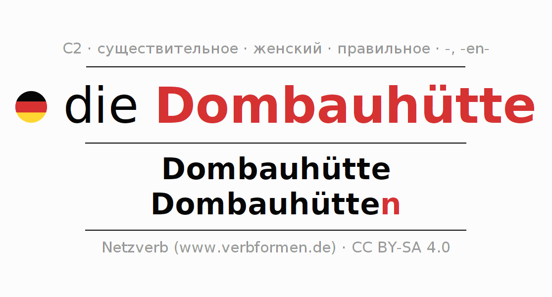 - Единственное число: die Dombauhütte, der Dombauhütte, der Dombauhütte, die Dombauhütte