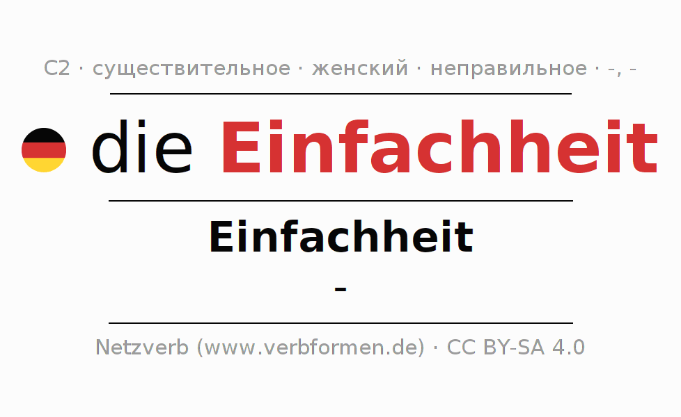 - Единственное число: die Einfachheit, der Einfachheit, der Einfachheit, die Einfachheit