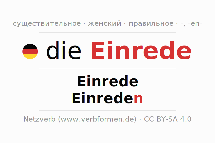 - Множественное число: die Einreden, der Einreden, den Einreden, die Einreden
