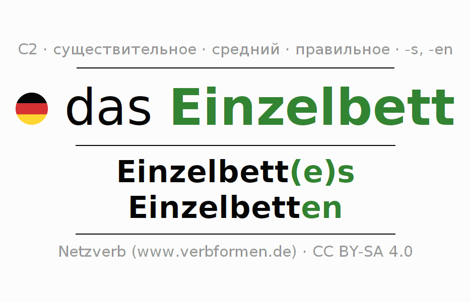 - Множественное число: die Einzelbetten, der Einzelbetten, den Einzelbetten, die Einzelbetten