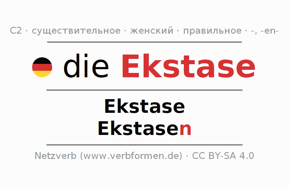- Единственное число: die Ekstase, der Ekstase, der Ekstase, die Ekstase