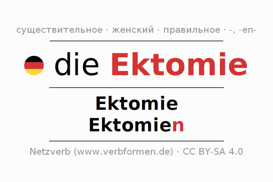 - Единственное число: die Ektomie, der Ektomie, der Ektomie, die Ektomie