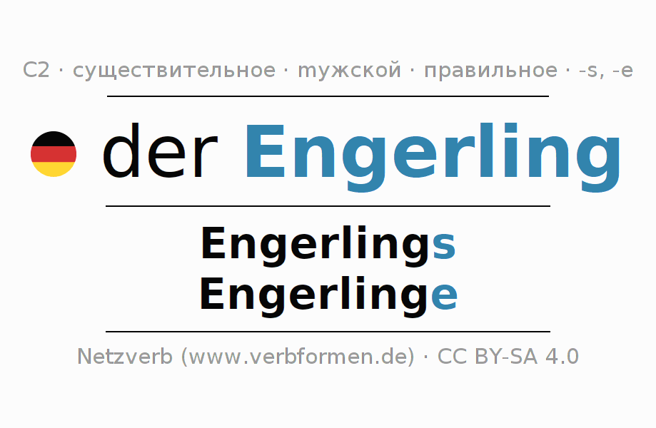 - Единственное число: der Engerling, des Engerlings, dem Engerling, den Engerling