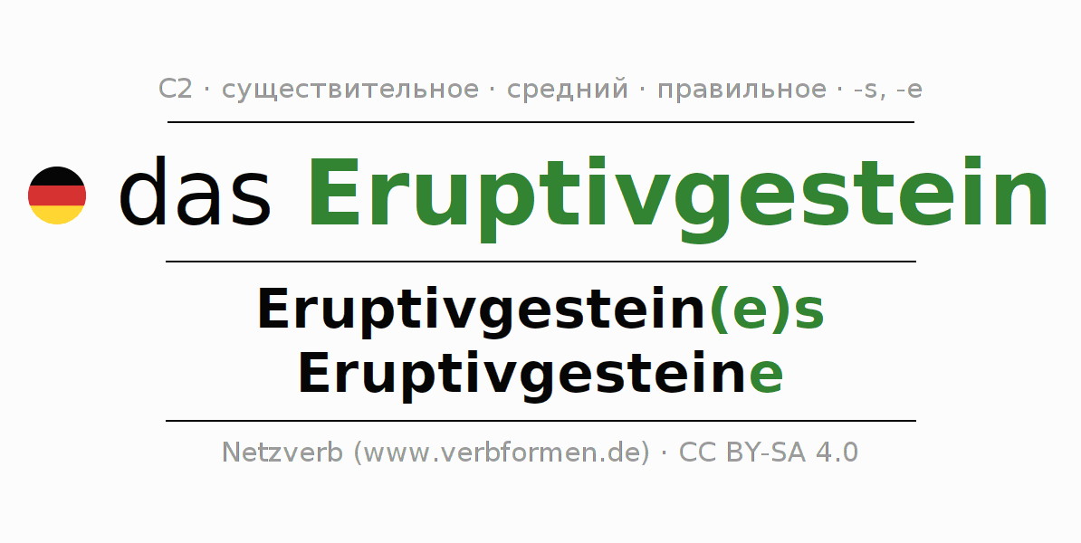 - Множественное число: die Eruptivgesteine, der Eruptivgesteine, den Eruptivgesteinen, die Eruptivgesteine