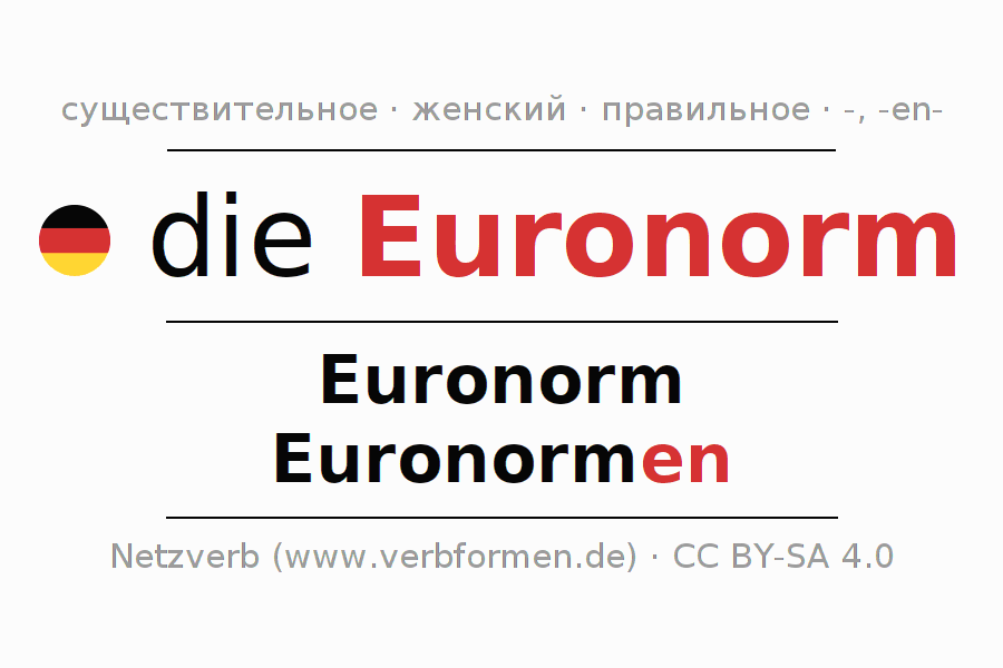 - Множественное число: die Euronormen, der Euronormen, den Euronormen, die Euronormen