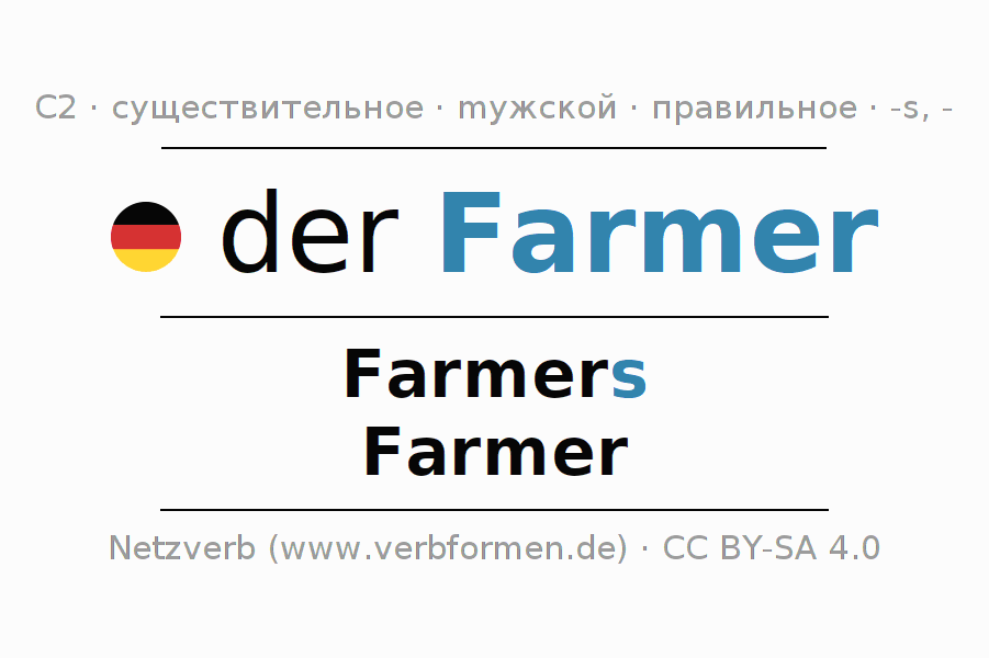 - Единственное число: der Farmer, des Farmers, dem Farmer, den Farmer