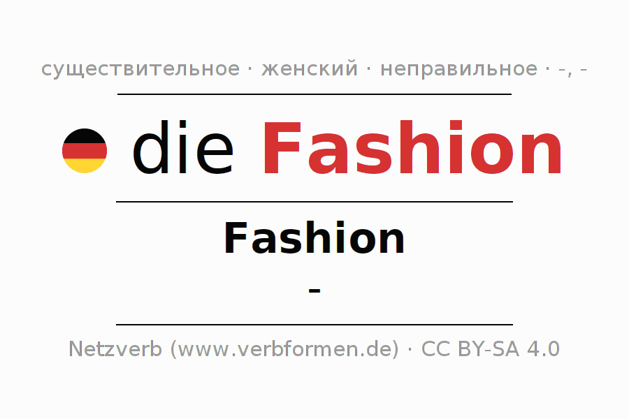 - Единственное число: die Fashion, der Fashion, der Fashion, die Fashion
