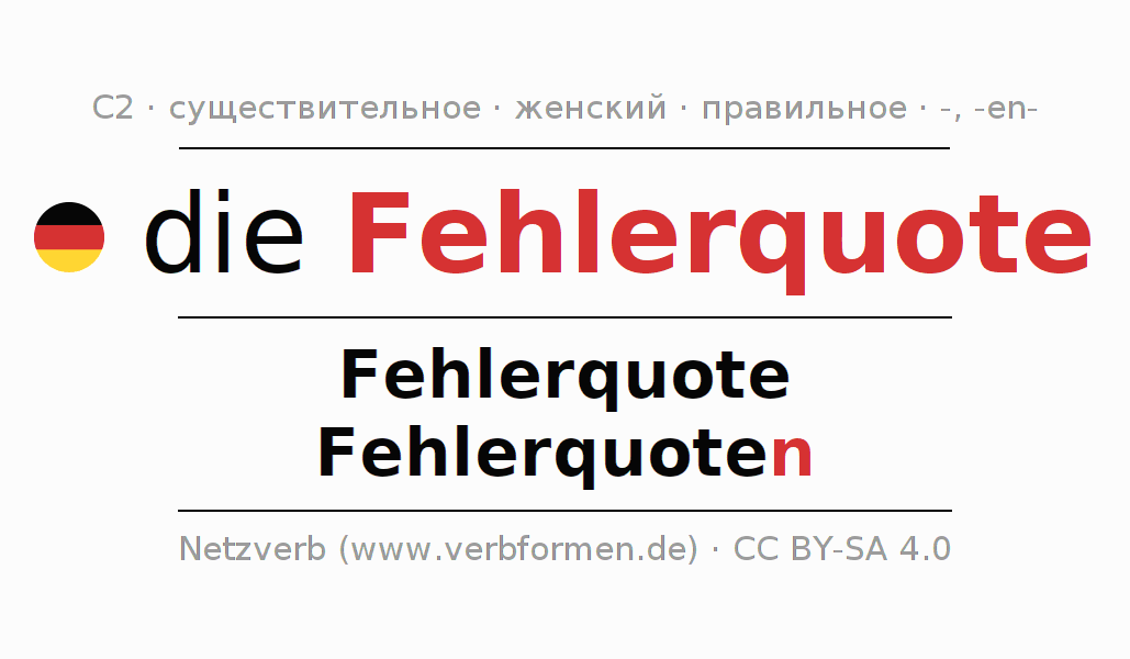 - Единственное число: die Fehlerquote, der Fehlerquote, der Fehlerquote, die Fehlerquote