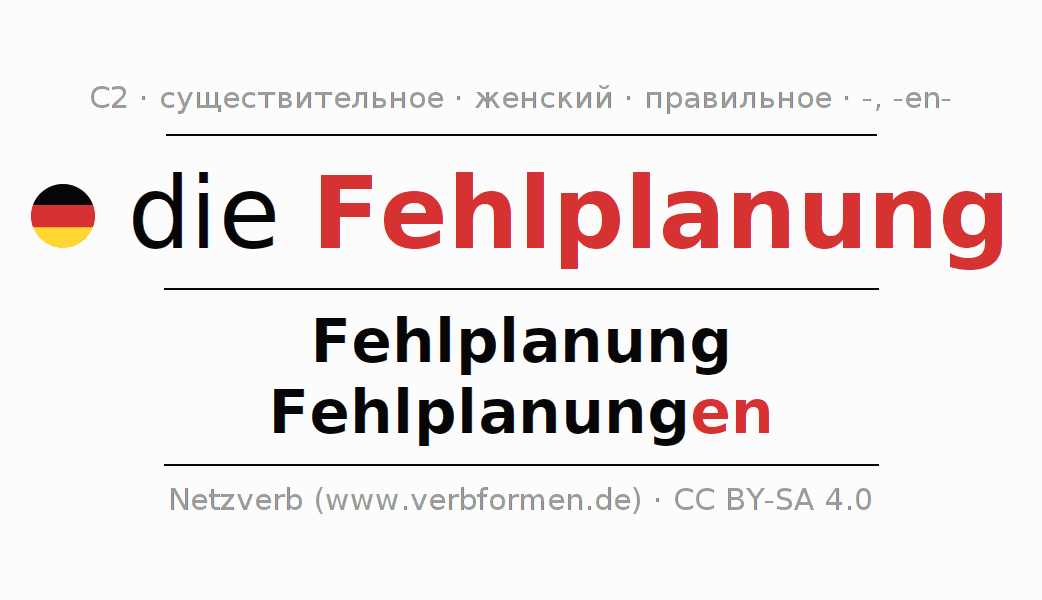 - Единственное число: die Fehlplanung, der Fehlplanung, der Fehlplanung, die Fehlplanung