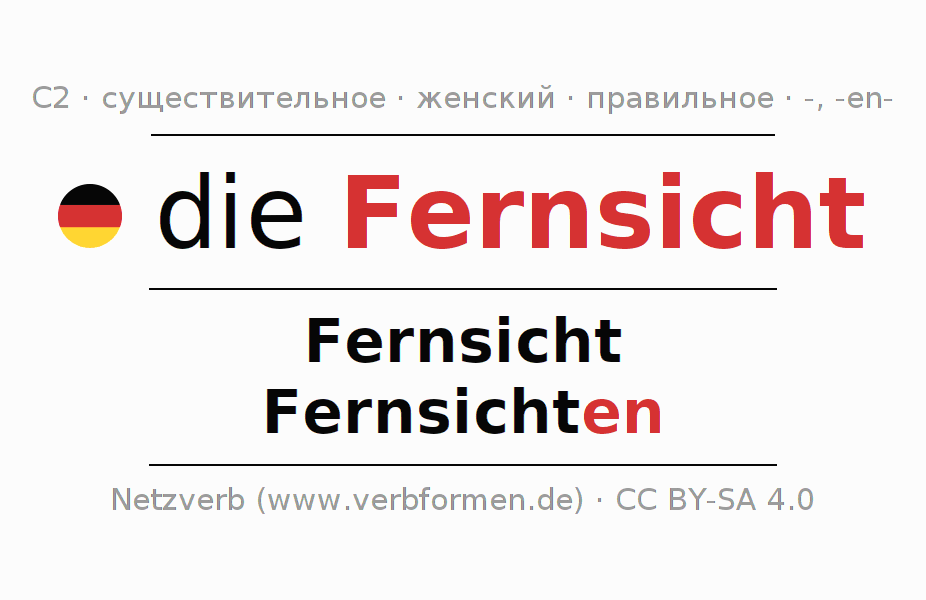- Единственное число: die Fernsicht, der Fernsicht, der Fernsicht, die Fernsicht