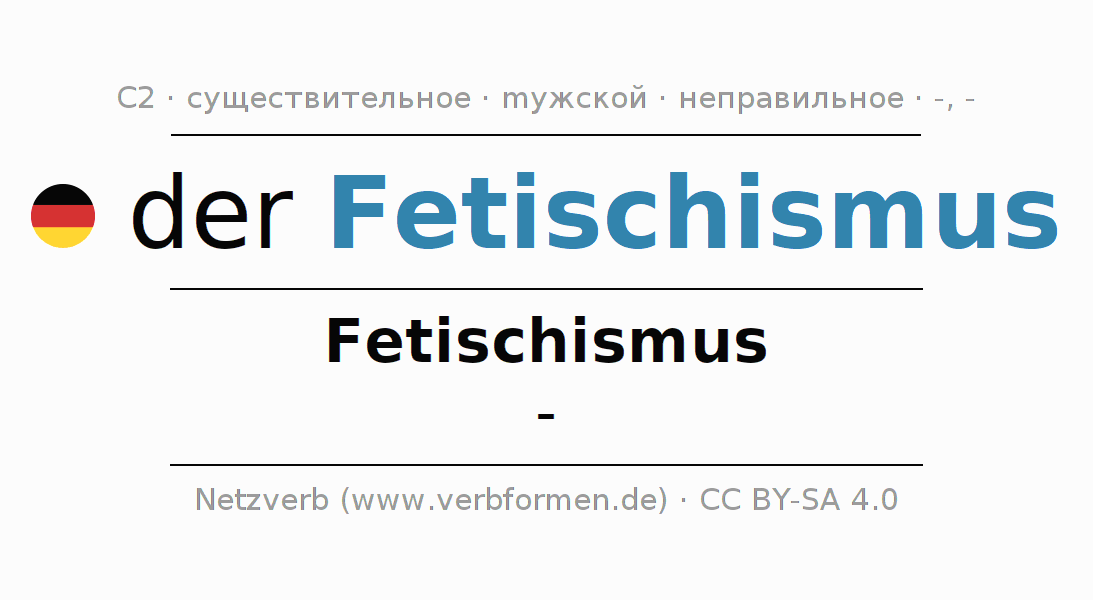 - Единственное число: der Fetischismus, des Fetischismus, dem Fetischismus, den Fetischismus