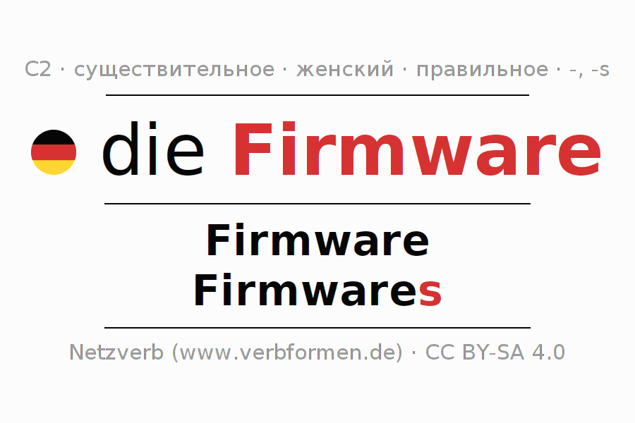- Единственное число: die Firmware, der Firmware, der Firmware, die Firmware