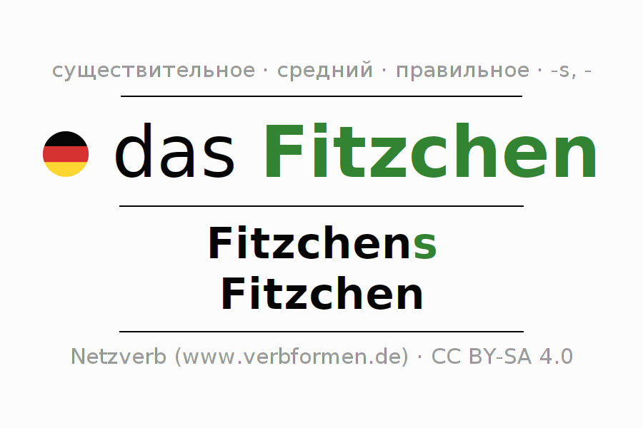 - Единственное число: das Fitzchen, des Fitzchens, dem Fitzchen, das Fitzchen
