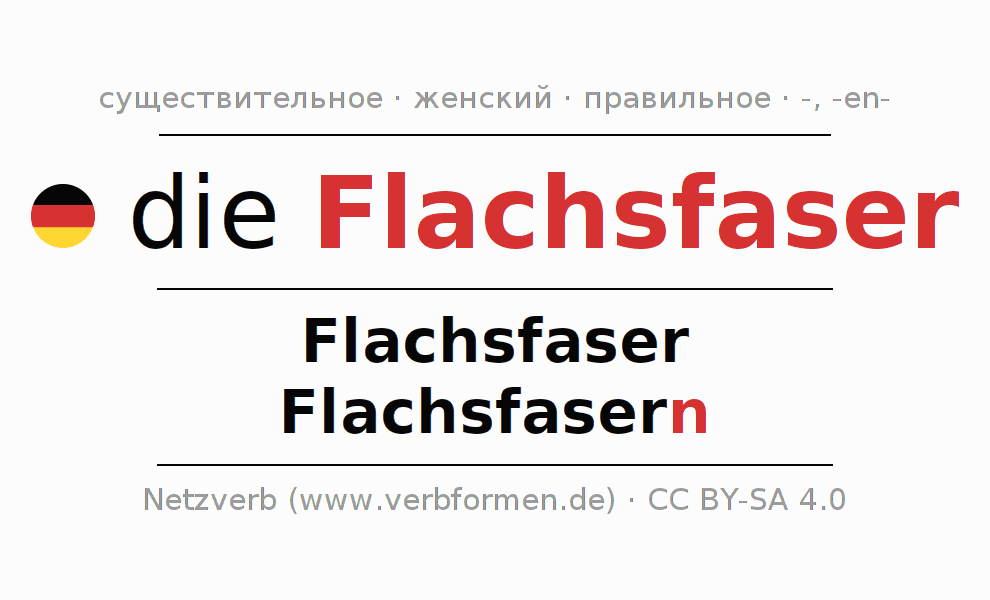- Единственное число: die Flachsfaser, der Flachsfaser, der Flachsfaser, die Flachsfaser