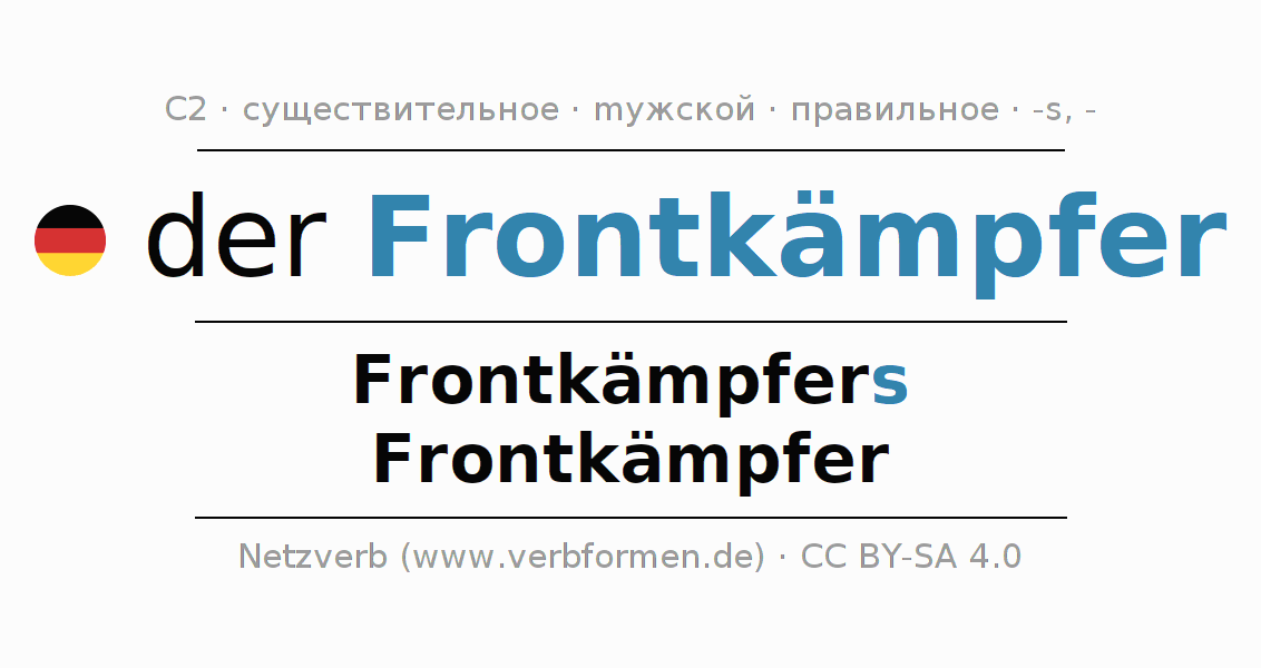 - Единственное число: der Frontkämpfer, des Frontkämpfers, dem Frontkämpfer, den Frontkämpfer