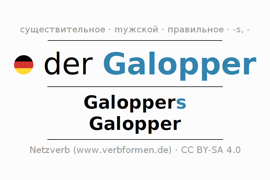 - Единственное число: der Galopper, des Galoppers, dem Galopper, den Galopper