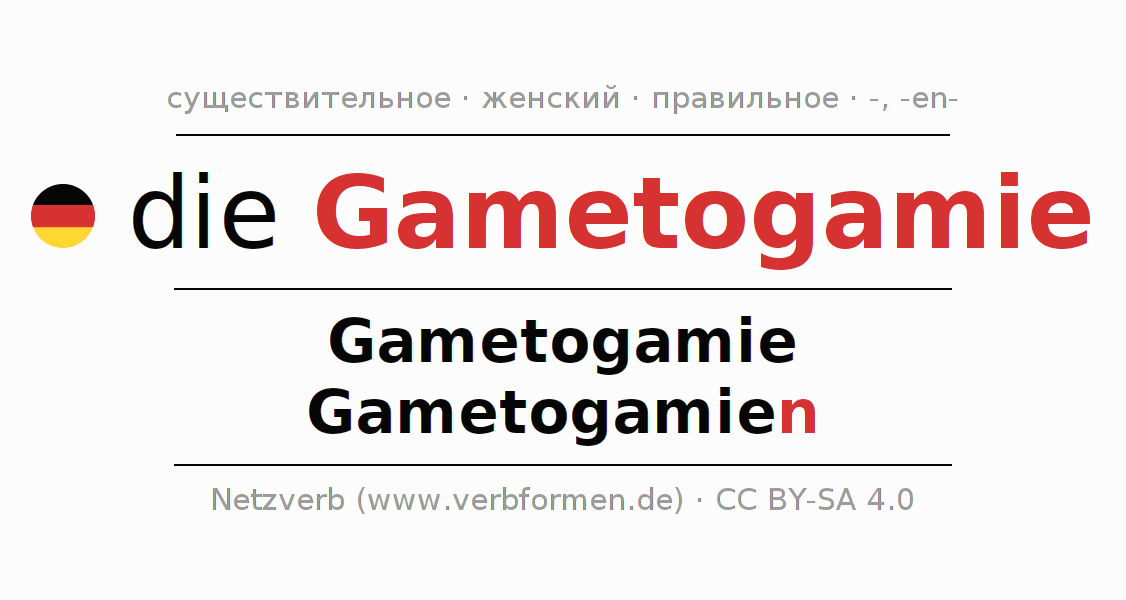 - Единственное число: die Gametogamie, der Gametogamie, der Gametogamie, die Gametogamie