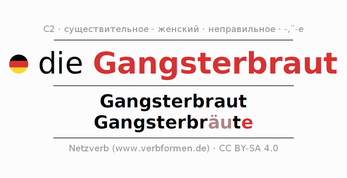 - Единственное число: die Gangsterbraut, der Gangsterbraut, der Gangsterbraut, die Gangsterbraut