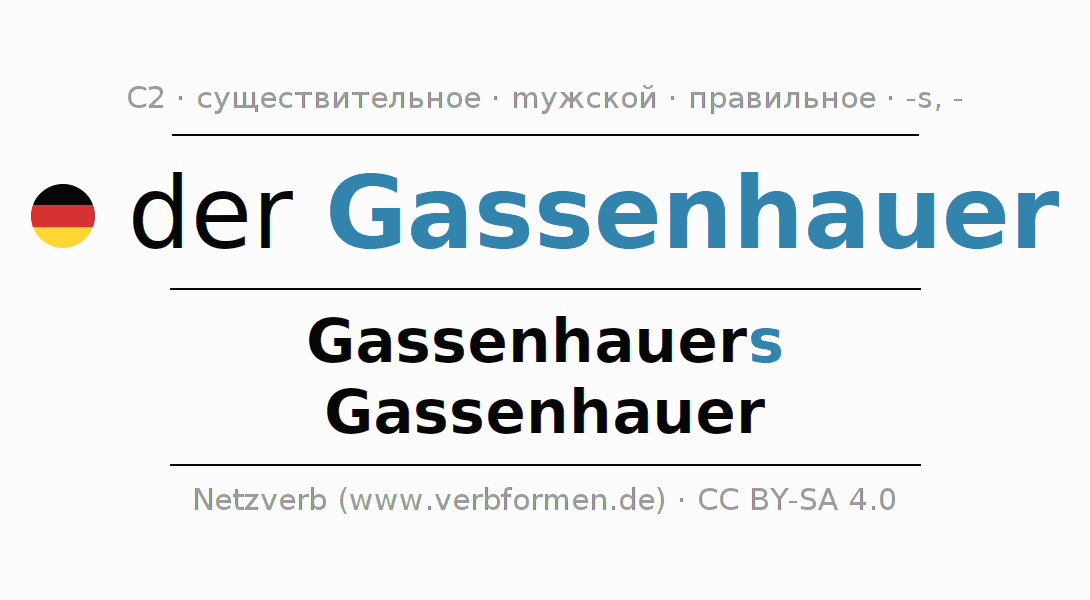 - Единственное число: der Gassenhauer, des Gassenhauers, dem Gassenhauer, den Gassenhauer