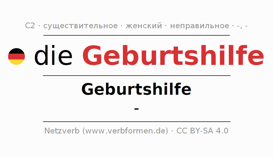 - Единственное число: die Geburtshilfe, der Geburtshilfe, der Geburtshilfe, die Geburtshilfe
