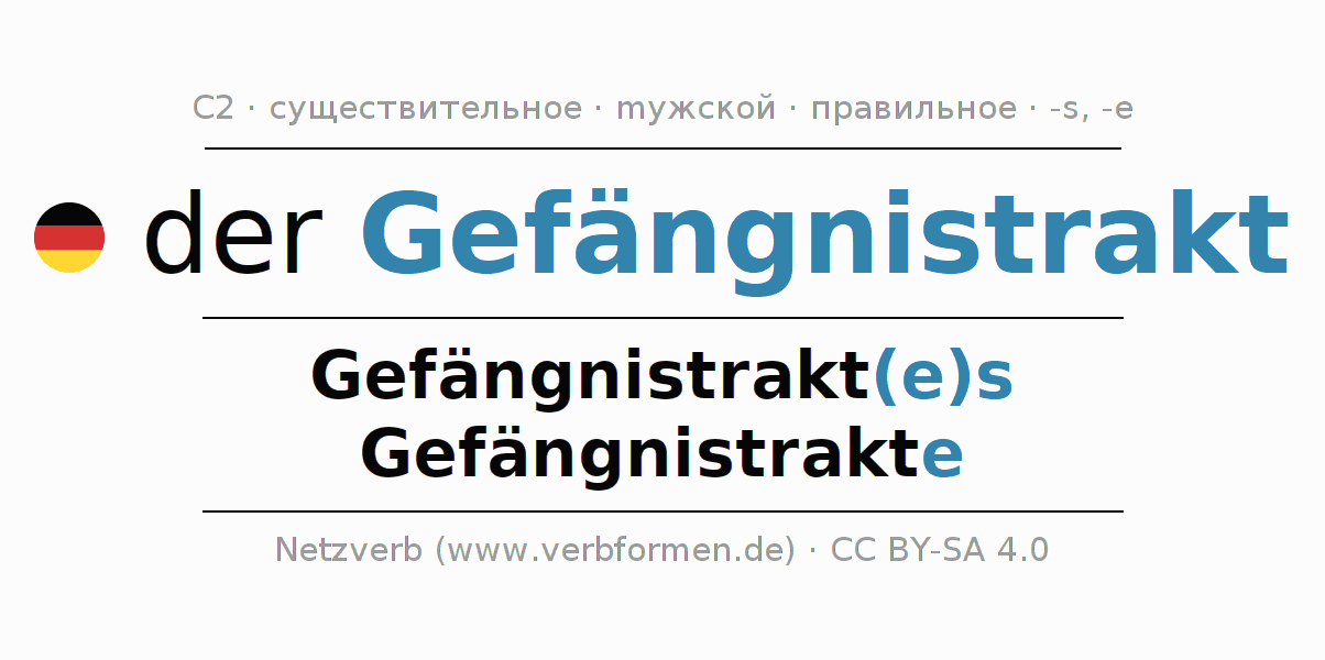 - Множественное число: die Gefängnistrakte, der Gefängnistrakte, den Gefängnistrakten, die Gefängnistrakte