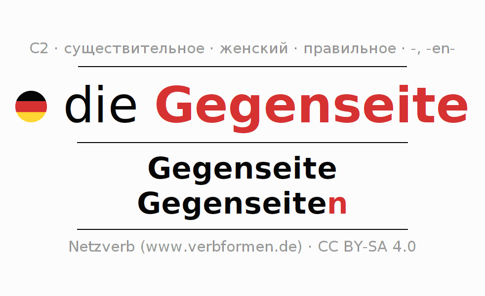 - Единственное число: die Gegenseite, der Gegenseite, der Gegenseite, die Gegenseite