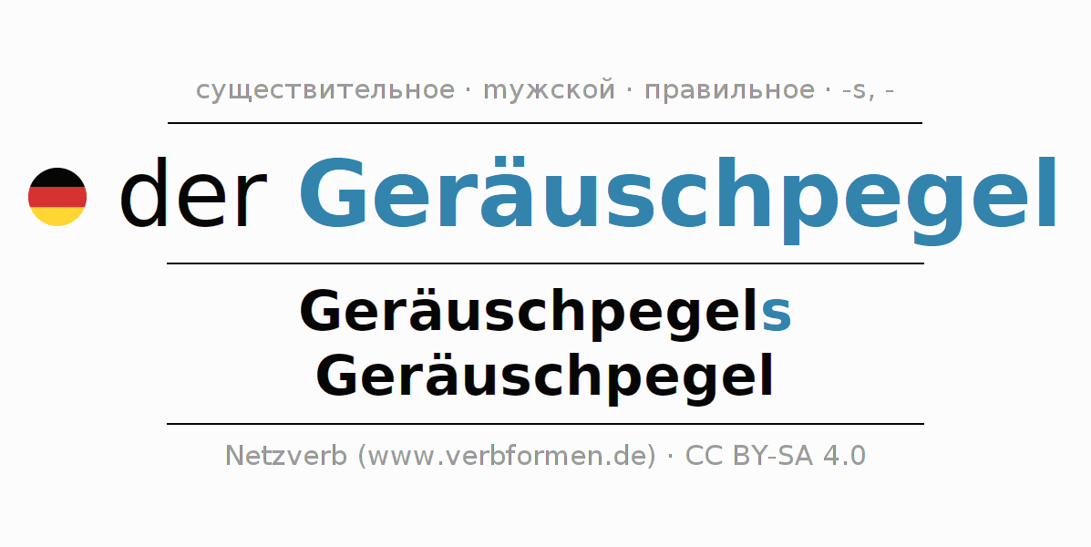 - Множественное число: die Geräuschpegel, der Geräuschpegel, den Geräuschpegeln, die Geräuschpegel