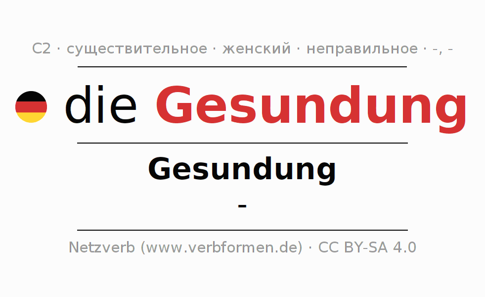 - Единственное число: die Gesundung, der Gesundung, der Gesundung, die Gesundung
